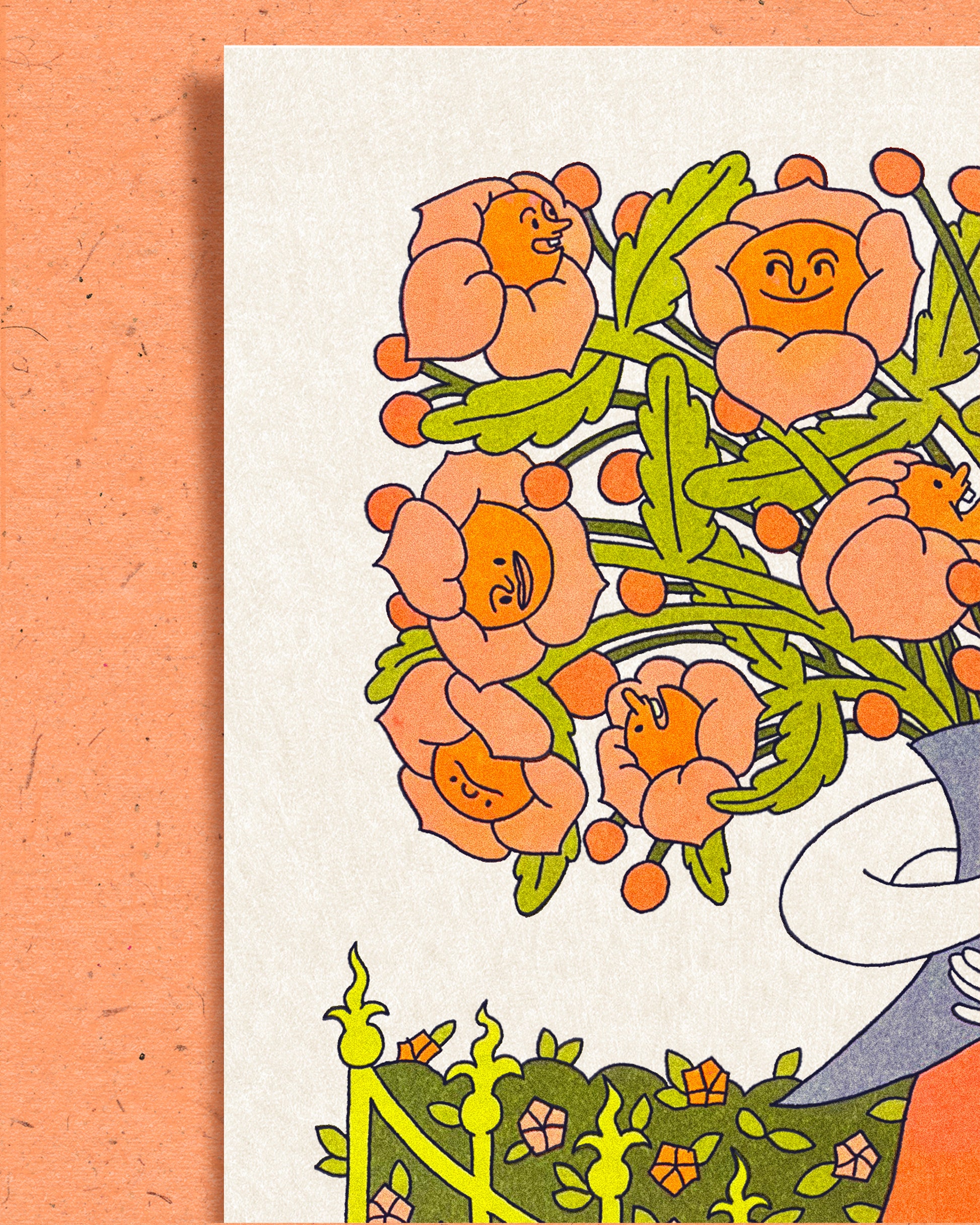 I Risograph printed these while an artist-in-residence at Directangle Press in New Hampshire. The cover print features fluorescent pink, yellow, kelly green, and mahogany inks.