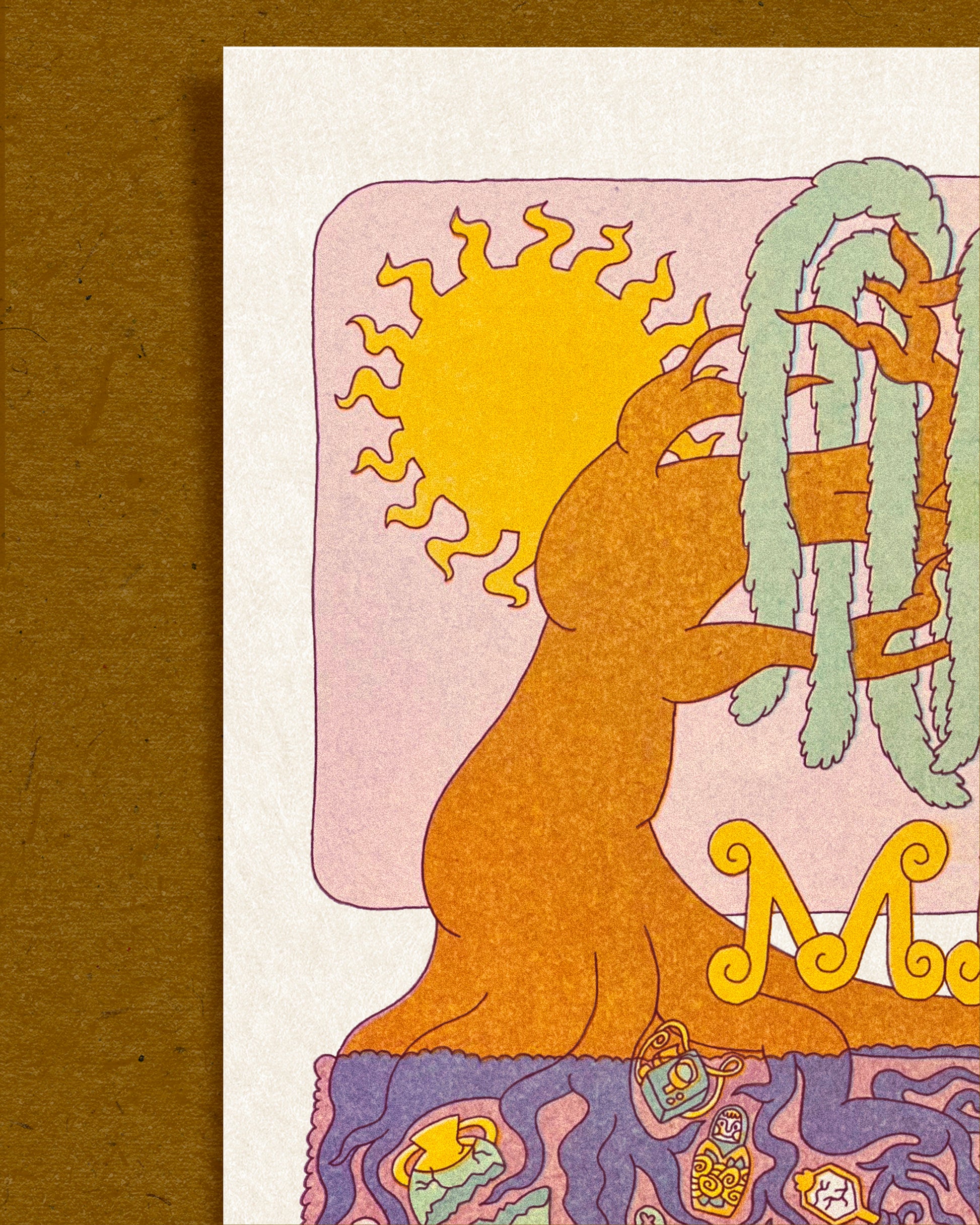 I Risograph printed these while an artist-in-residence at Directangle Press in New Hampshire. The cover print features fluorescent pink, yellow, kelly green, and mahogany inks.