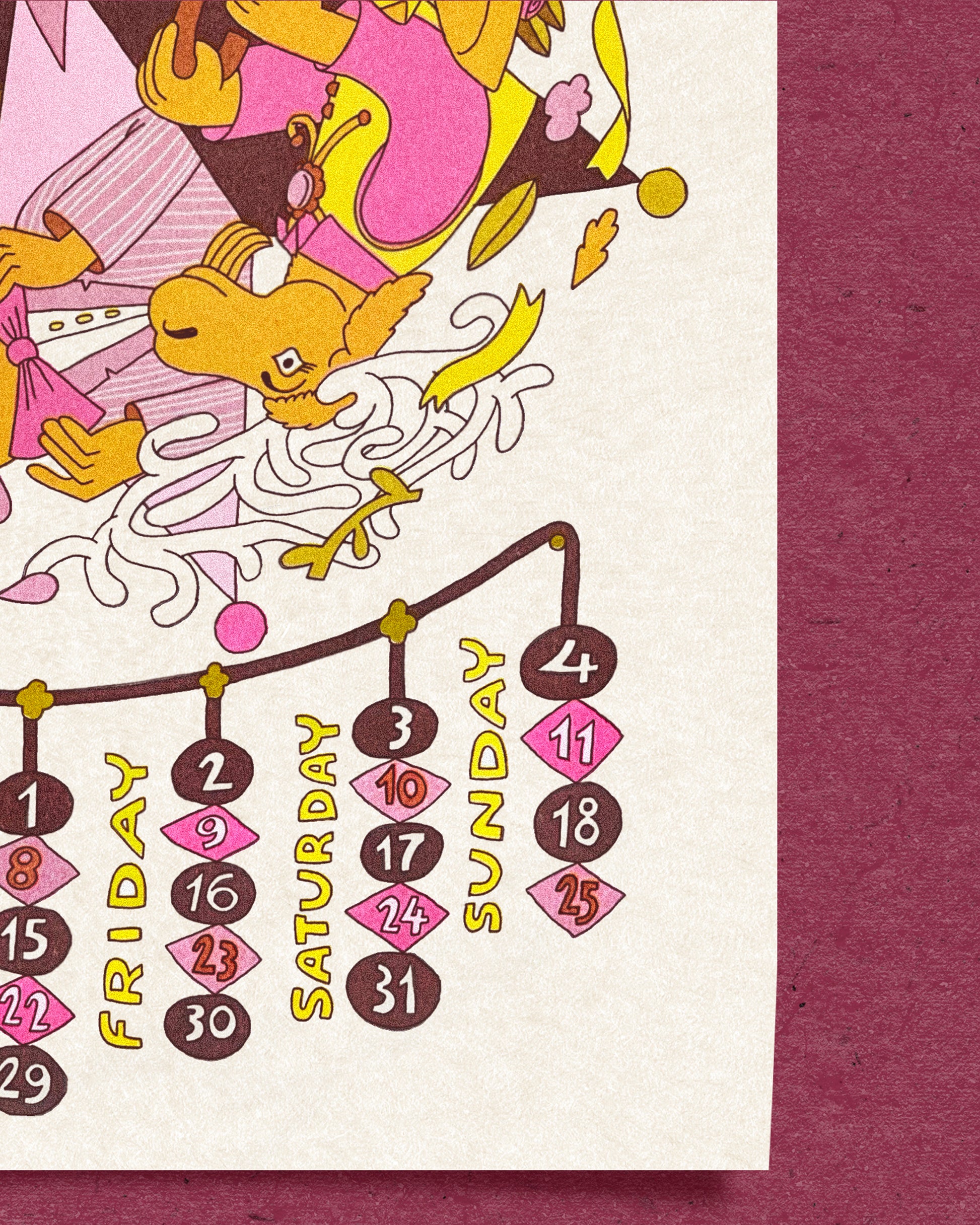 Available in 2 alignment options at 2 different prices: "Perfectly Good" meaning its a nearly perfect print that I would have included in an actual calendar had all the other months been available. "Slight misprint" just means there are some subtle misalignments in the colors, but its still super cute--worthy of a wall or frame, just slightly wonky if youre down with that!